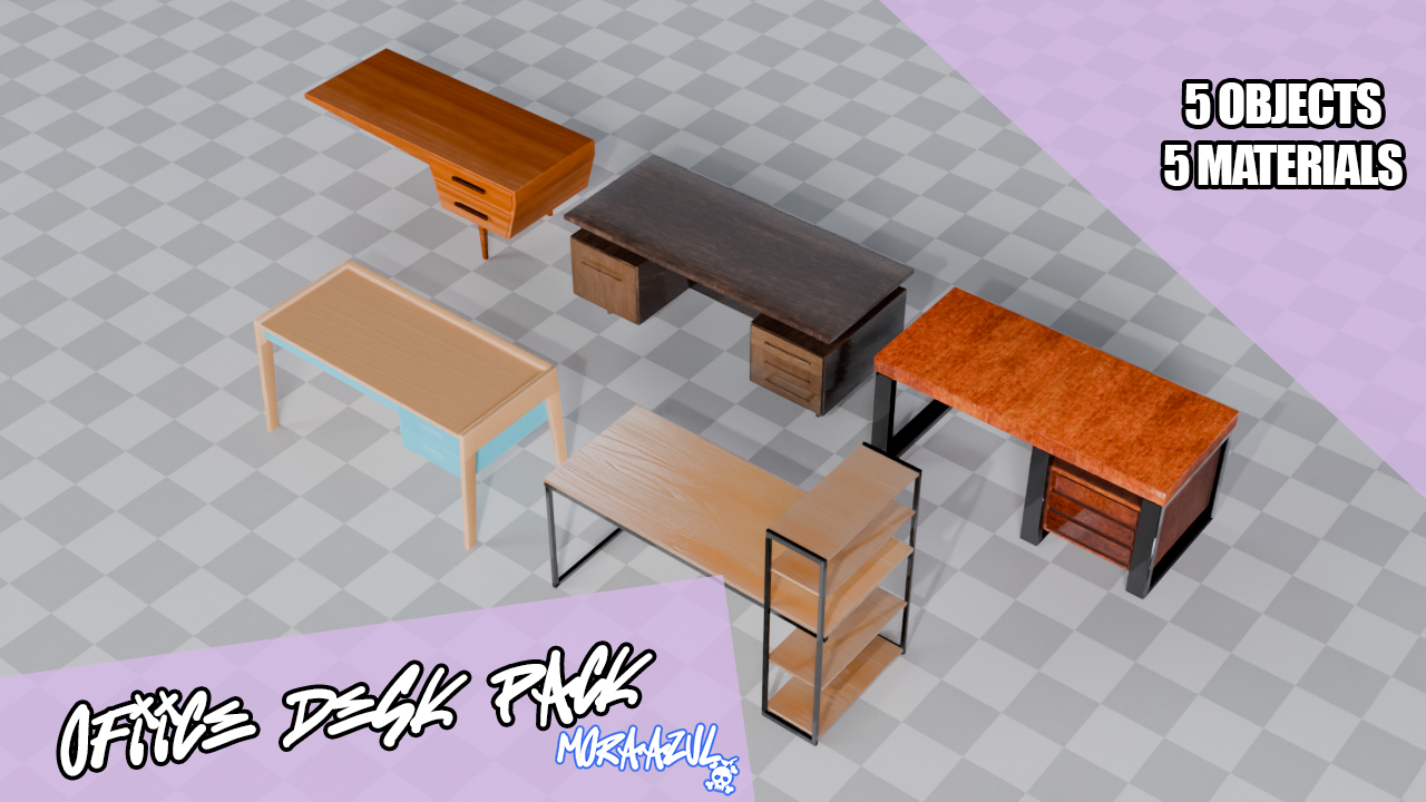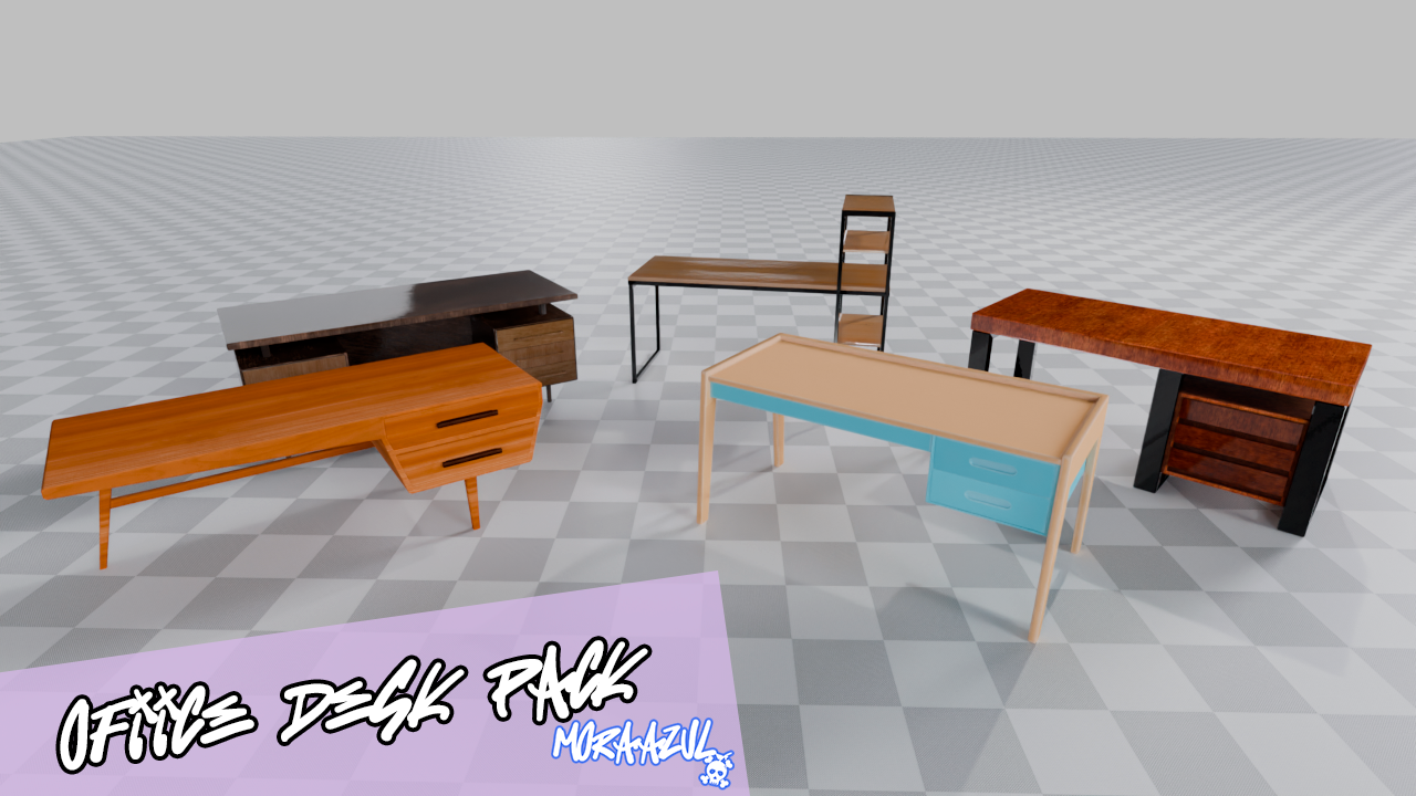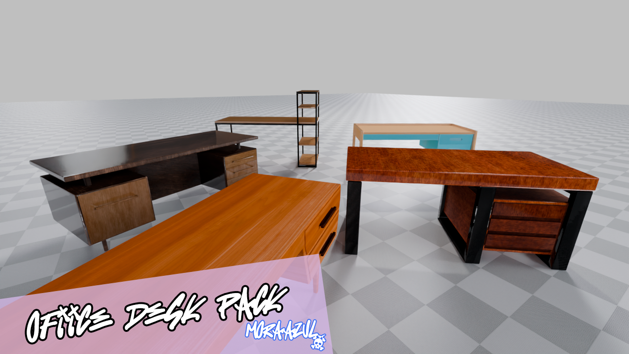 A collection of 5 realistic office desks, perfect for furnishing modern workspaces in your games or 3D projects.